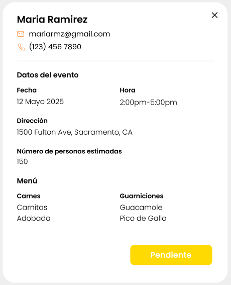 - Entra a Catering y Eventos.