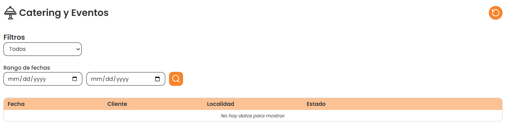- Gestión de solicitudes de Catering y Eventos (tabla, detalle, estatus).
