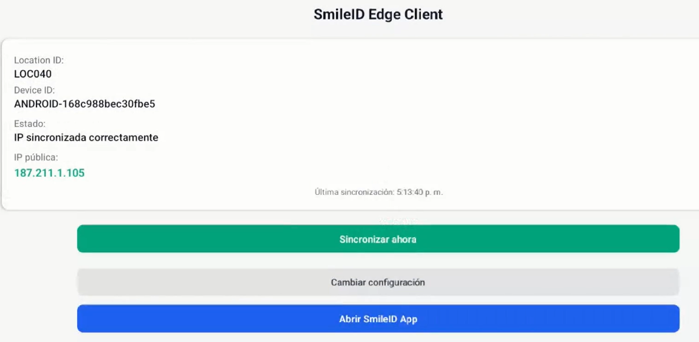 En la versión 1.2 de la app Smile ID, al instalarla en los dispositivos ya quedará configurada de la misma manera.