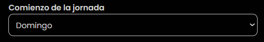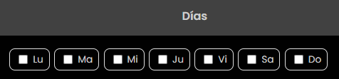 - Días (Mo, Tu, We, Th, Fr, Sa, Su)
